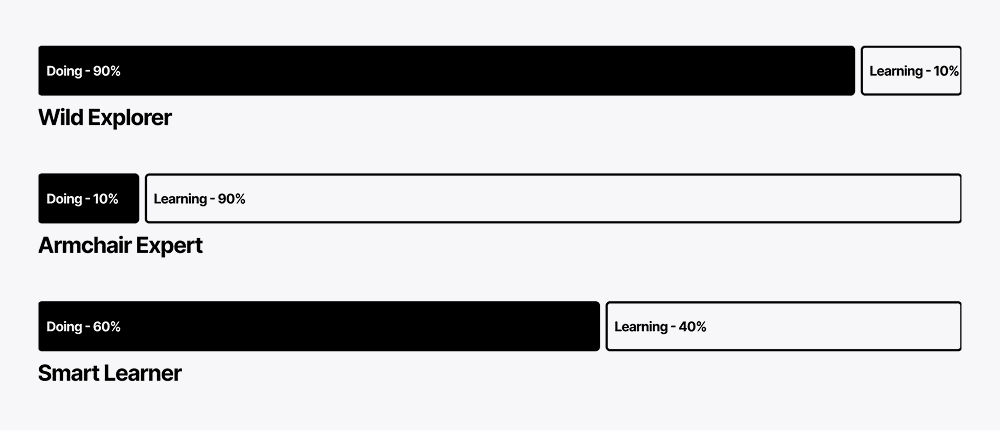 When you learn Framer, you have to keep the right balance. If you start learning and spend 90% of your time on practicing and only 10% on learning the tool (tutorials, videos, etc.), you’re probably not doing it effectively.